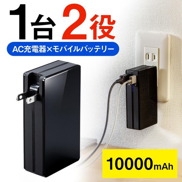 モバイルバッテリー 大容量 10000mah スマホ Acプラグ コンセント 内蔵 急速充電 2台同時充電 Pse サンワダイレクト 通販 Paypayモール