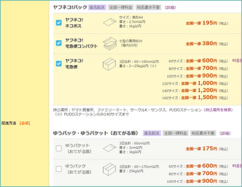 ヤフネコパック 宅急便 の規格とコンビニで送る方法