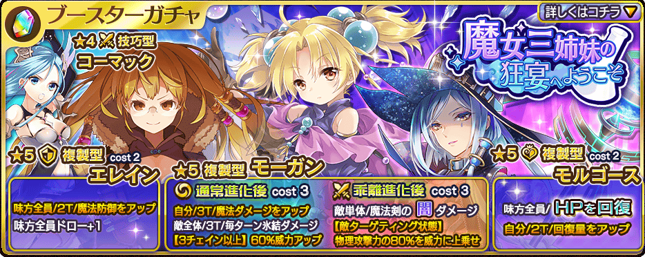 乖離性ミリオンアーサー 魔女三姉妹の狂宴へようこそ 開催 エレイン モルゴース モーガン の新カードをゲットだ Boom App Games