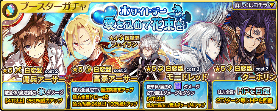 乖離性ミリオンアーサー ブースターガチャ ホワイトデー 愛を込めて花束を 登場 新たに追加された 白恋型 輝煌型 の騎士について解説 Boom App Games