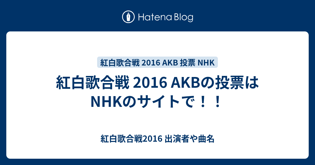紅白歌合戦 2016 Akbの投票はnhkのサイトで 紅白歌合戦2016 出演者や曲名