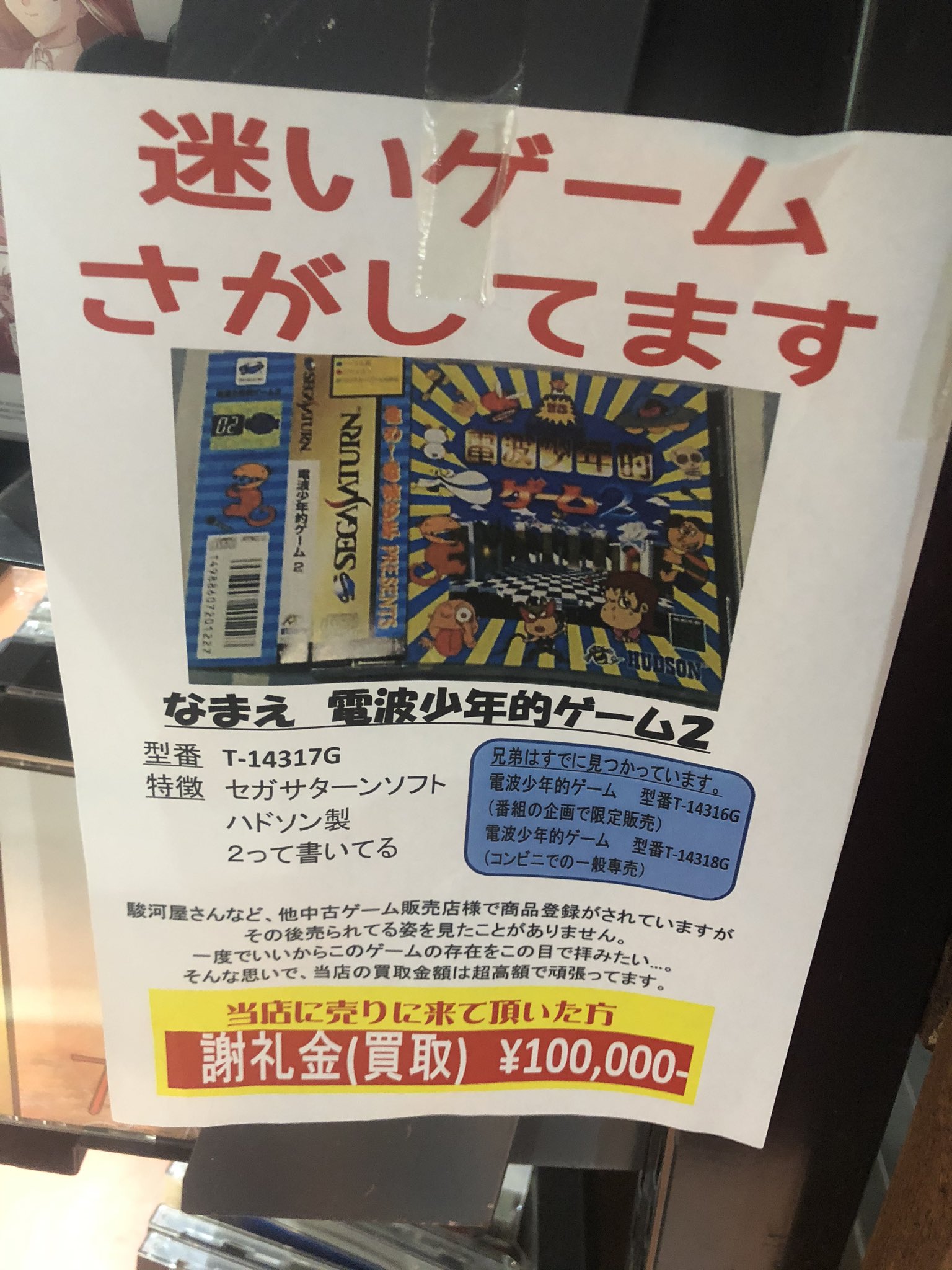 Alex Kraus On Twitter A Local Shop Is Offering 100 000 925 Usd For The Trade In Of A Sega Saturn Game Called 電波少年的ゲーム2 It Is So Rare That While It Has An